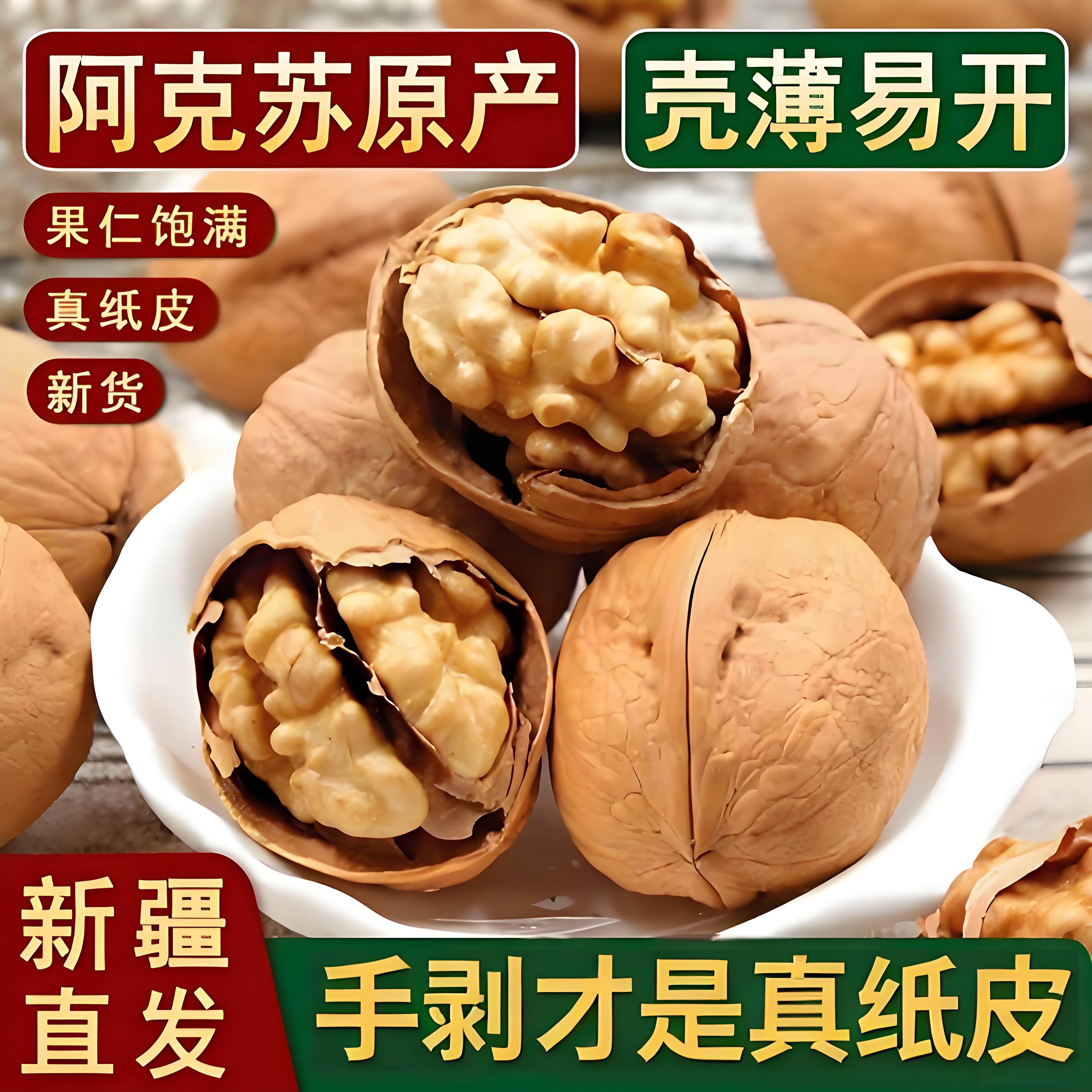 【品质】新疆特产,新疆阿克苏纸皮核桃,2025年新鲜上市,原汁原味,口感香脆,是您的美食选择!快来选购吧!