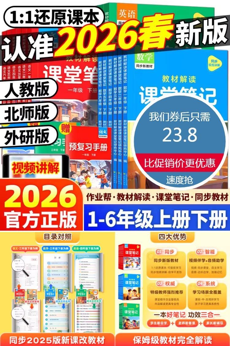 【赠预复习手册】2026春作业帮教材解读课堂笔记新课标版,同步2025版新课改教材,预习有方法,覆盖学习全场景,答题式笔记,内容详尽,可替代课本,孩子提前学不用等!