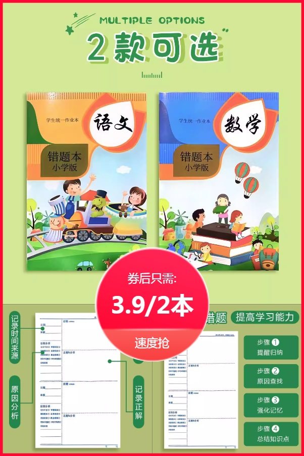 推荐:2本小学生错题本语文数学任选