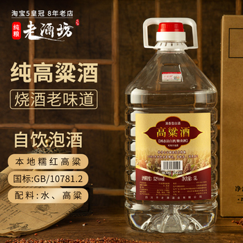 【原价129-立减16-优惠券10元-淘金币34.83元-首单7元=61.17元】泸州纯高粱酒桶装优选,领10.0亓优惠卷~高度白酒爱好者的福音,百分百纯粮酿造,固态发酵工艺,清香浓郁,回味悠长,无添加纯正体验,官方老酒坊,超10万斤口碑之选,纯粮食好酒,送礼自饮皆宜