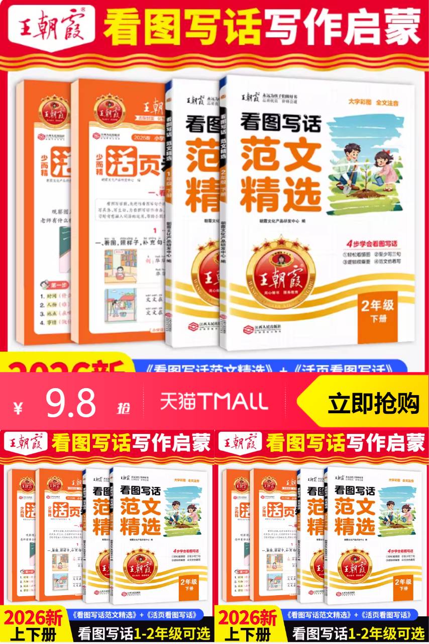 【原价14.8,领券减5,淘金币抵扣1.18,到手仅需8.62】用我们的2026春下册看图写话范文精选,开启你的小写手们的心灵宝藏吧👼。专为一二年级设计,书里收录的范文均精心挑选👩🎤。让孩子在读图识物、描绘情节中感受表达的快乐