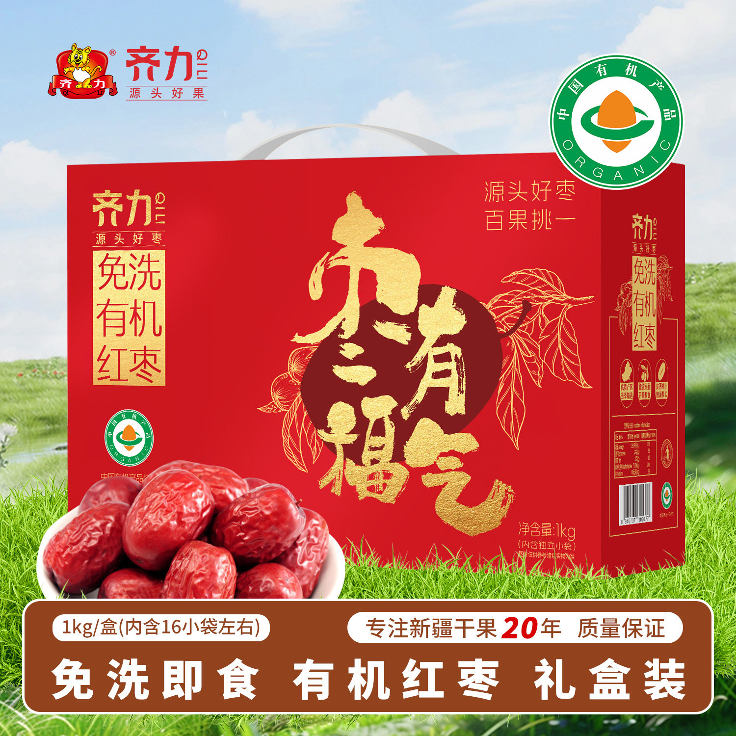 推荐:齐力有机红枣礼盒1kg免洗即食
