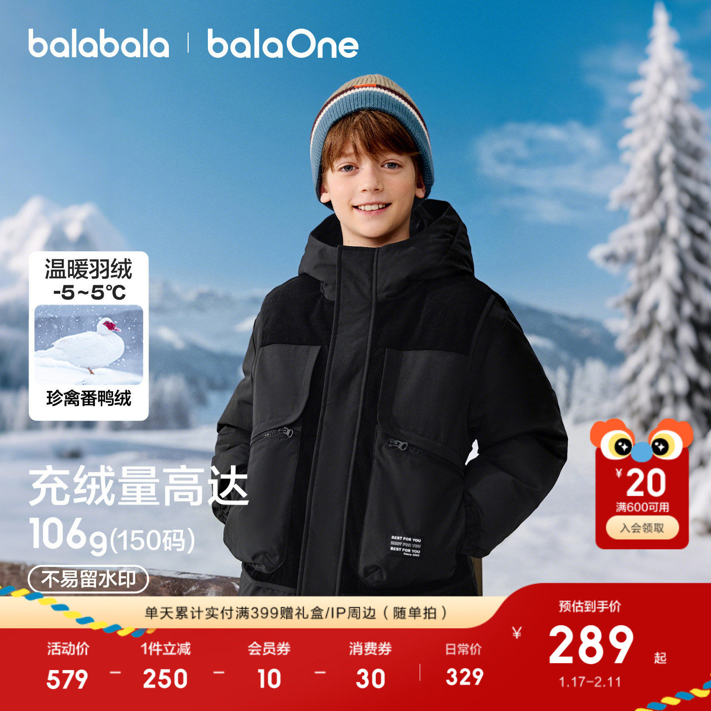 【经典款式】巴拉巴拉儿童羽绒服,采用高品质面料制作,轻盈保暖,适合冬季穿着。假两件设计,既可单穿又可作为外套搭配其他衣物,时尚百搭。精选优质羽绒填充,保暖。推荐给喜欢户外活动的孩子们,让他们在寒冷的天气里也能保持温暖舒适。