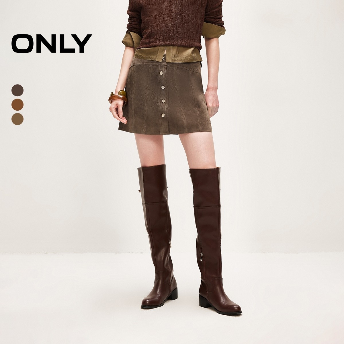 ONLY官方旗舰店的这款高腰显瘦挺阔A字皮裙半身裙是您春夏季的不二之选!精选优质面料,贴合身形设计,让您在人群中脱颖而出。金属LOGO定制排扣装饰,增添时尚感。无论是日常穿搭还是聚会装扮,都能展现您的优雅气质。