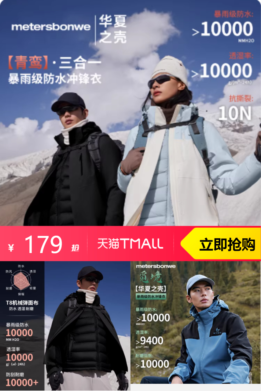 【立减160+消费券抵扣22.4到手156.6】美特斯邦威冬季新款情侣三防冲锋衣户外登山,从冲锋衣,升级为保暖更轻量的二合一三防冲锋衣。
