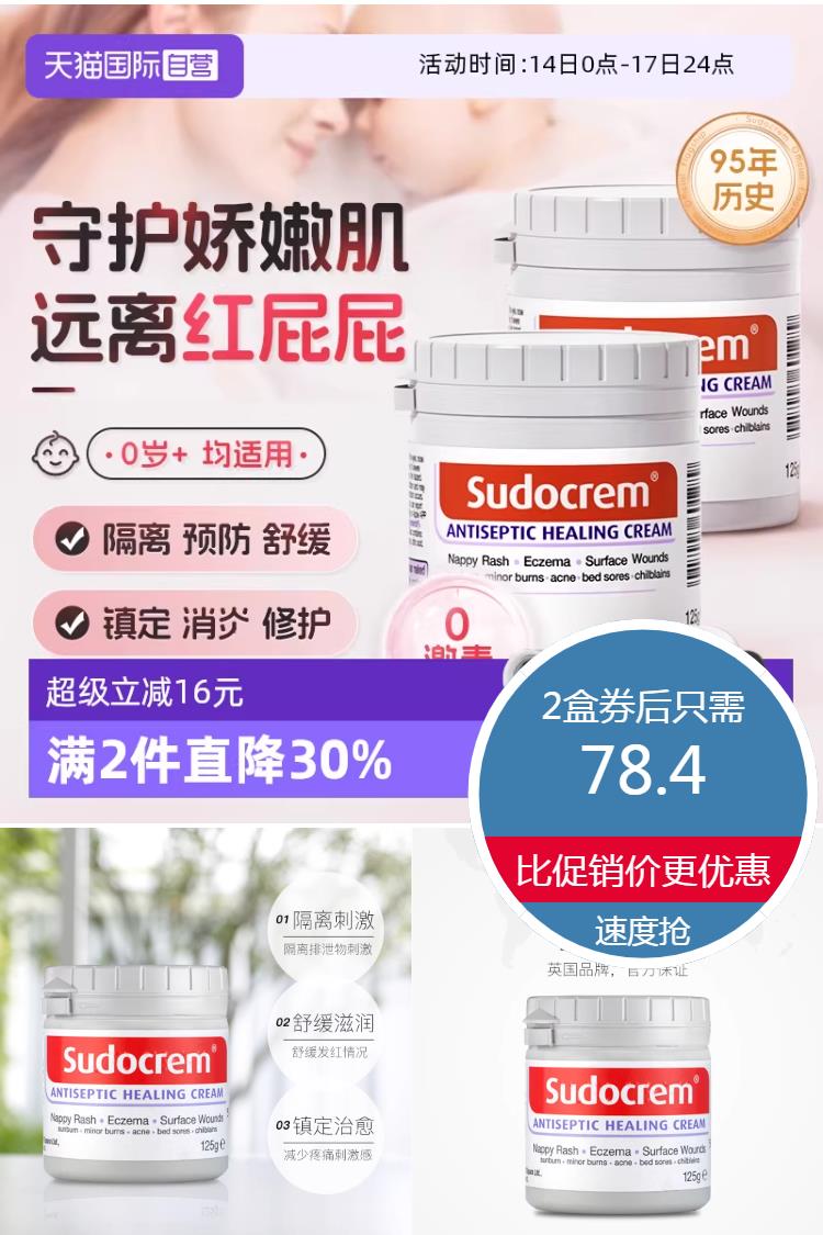 【叠加88会员到手约37/盒】宝宝红屁屁反复太闹心?英国Sudocrem护臀膏来拯救!含氧化锌,隔离刺激+舒缓修复,轻柔好推开。一瓶多用,湿疹、擦伤也能涂。自营正品,宝妈安心囤!