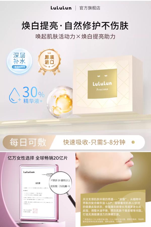 日本原装进口新升级版!LuLuLun驻颜焕白面膜,三重玻尿酸+烟酰胺+肌肽,保湿×焕白×抗糖抗老一步到位~49元享32片!单片仅5.9元,日系药妆级品质,敏感肌安心用,透亮紧致看得见!解锁每日15分钟的精致护肤仪式感!