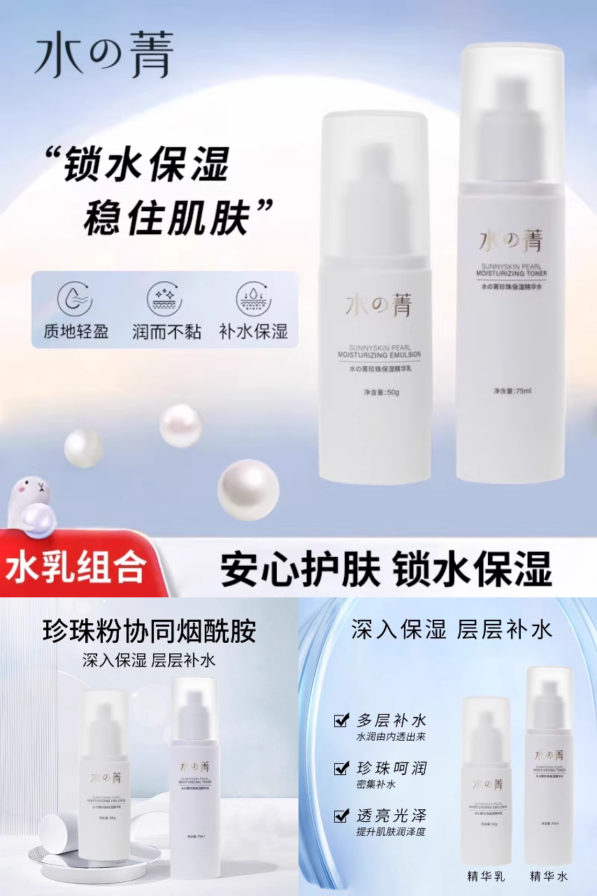 推荐:水菁珍珠保湿精华水75g/精华乳50g