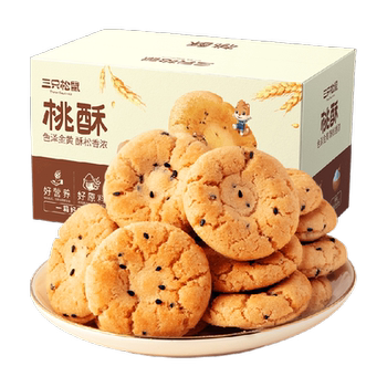 【三只松鼠官方旗舰店】酥香浓郁桃酥,休闲零食的不二之选。精选优质食材,手工制作,口感丰富,让您品味不一样的美味。无论是作为早餐还是下午茶的小零食,都是您的理想选择。