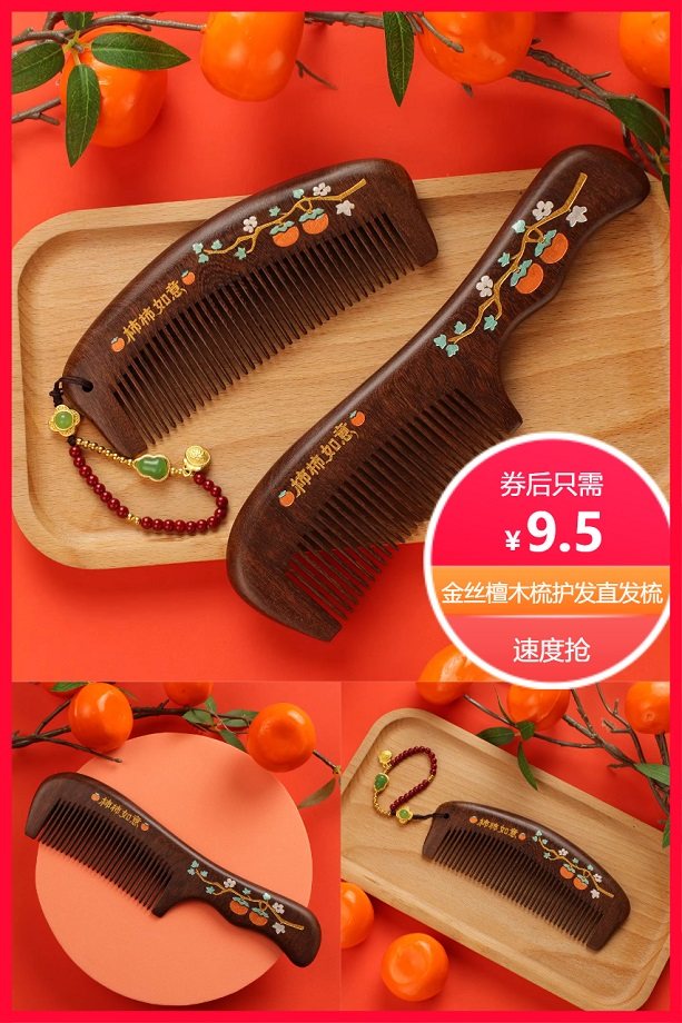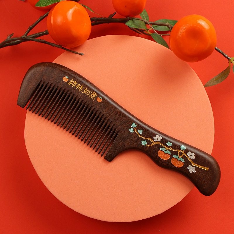 买就送布袋,券20元后9.5元,金丝檀木梳复古风护发直发梳,金丝檀木梳,精美彩绘,大牌同款工艺,柿柿如意