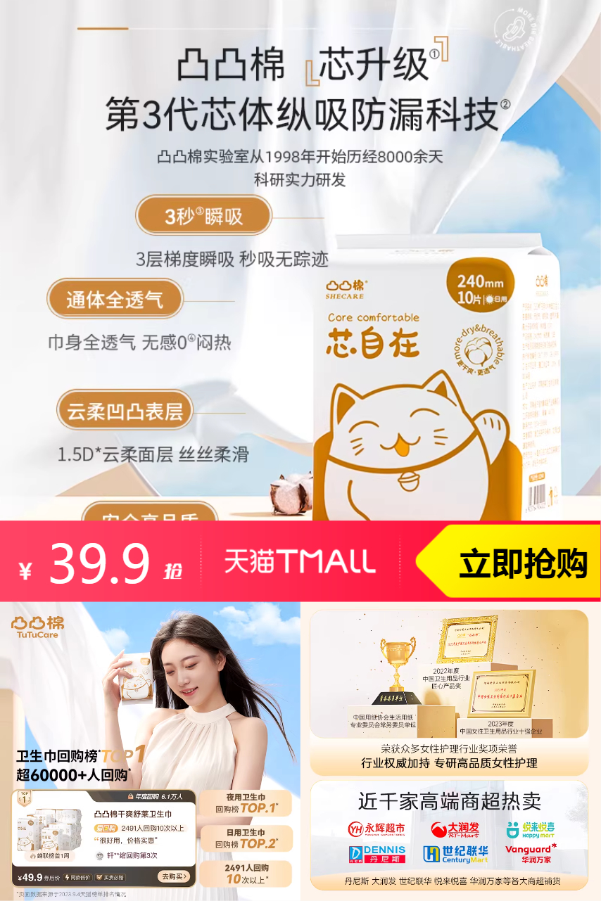 【19号到39%,叠加淘金币4.49加200-25消费券到手31左右,单片0.3元】赠送礼物多多!高端赠品到手,性价比拉满!凸凸棉卫生巾女日夜用囤货装亲肤透气官方旗舰店正品。
