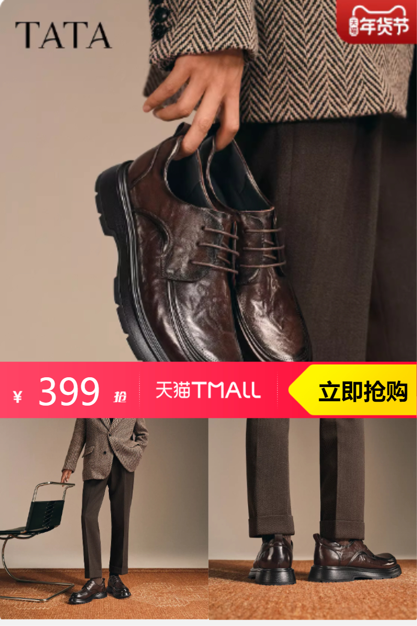 【叠加淘金币15元,凑380-45消费券,到手339元】TATA他她男鞋2025冬季商务休闲皮鞋,稳固舒适,畅意行走。