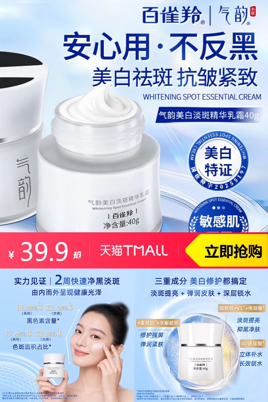 【淘金币抵扣1,到手价38.9】含有丰富的美白成分,让你的肌肤在享受滋养的同时,逐步提亮肤色,让你轻松拥有水润光泽的肌肤。