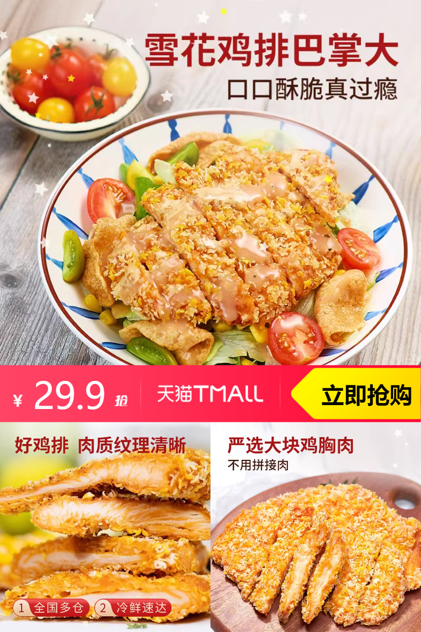 用上等鸡胸肉,经过精心腌制,肉质鲜嫩多汁。独特的雪花纹理,每一口都散发着浓郁的肉香~