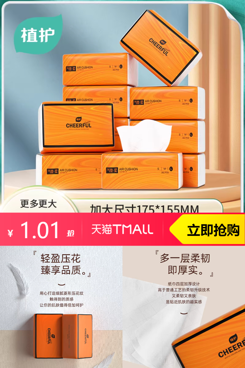 【天降直接到手1.01元】橙色气垫纸采用环保原料制作,纸张细腻、柔韧不伤手。是家居卫生,宝宝日常护理的理想之选!