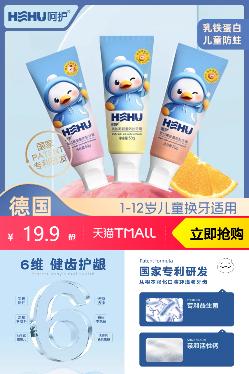 推荐:呵护儿童牙膏含氟防蛀奥拉氟牙膏[5件套]