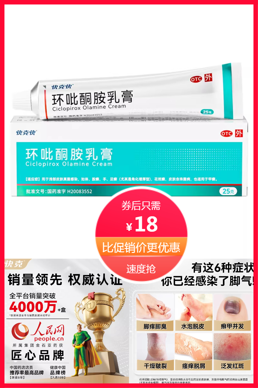 淘金币抵1.25,到手16.75元,针对皮肤真菌感染,专攻复发,抗菌性强,解决不同脚气问题。