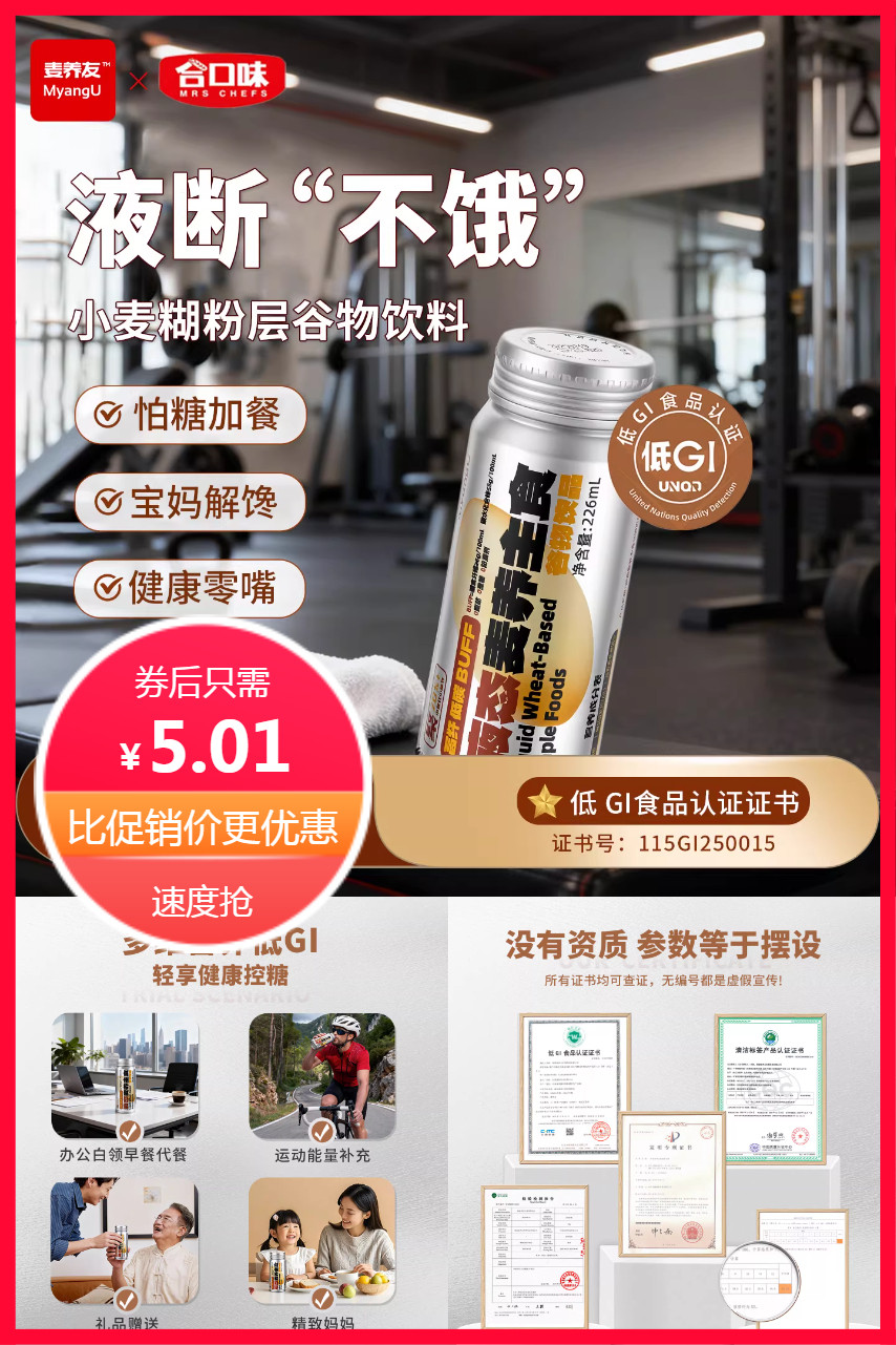 【可签到】学生早餐神器!麦养友小麦代餐饮,双标权威认证,低GI扛饿3小时,植物蛋白+膳食纤维,营养均衡,配料纯粹轻负担,高纤,低碳,控糖同,每一口都是健康,轻盈不饿低GI食品享瘦,健康每一天,速抢