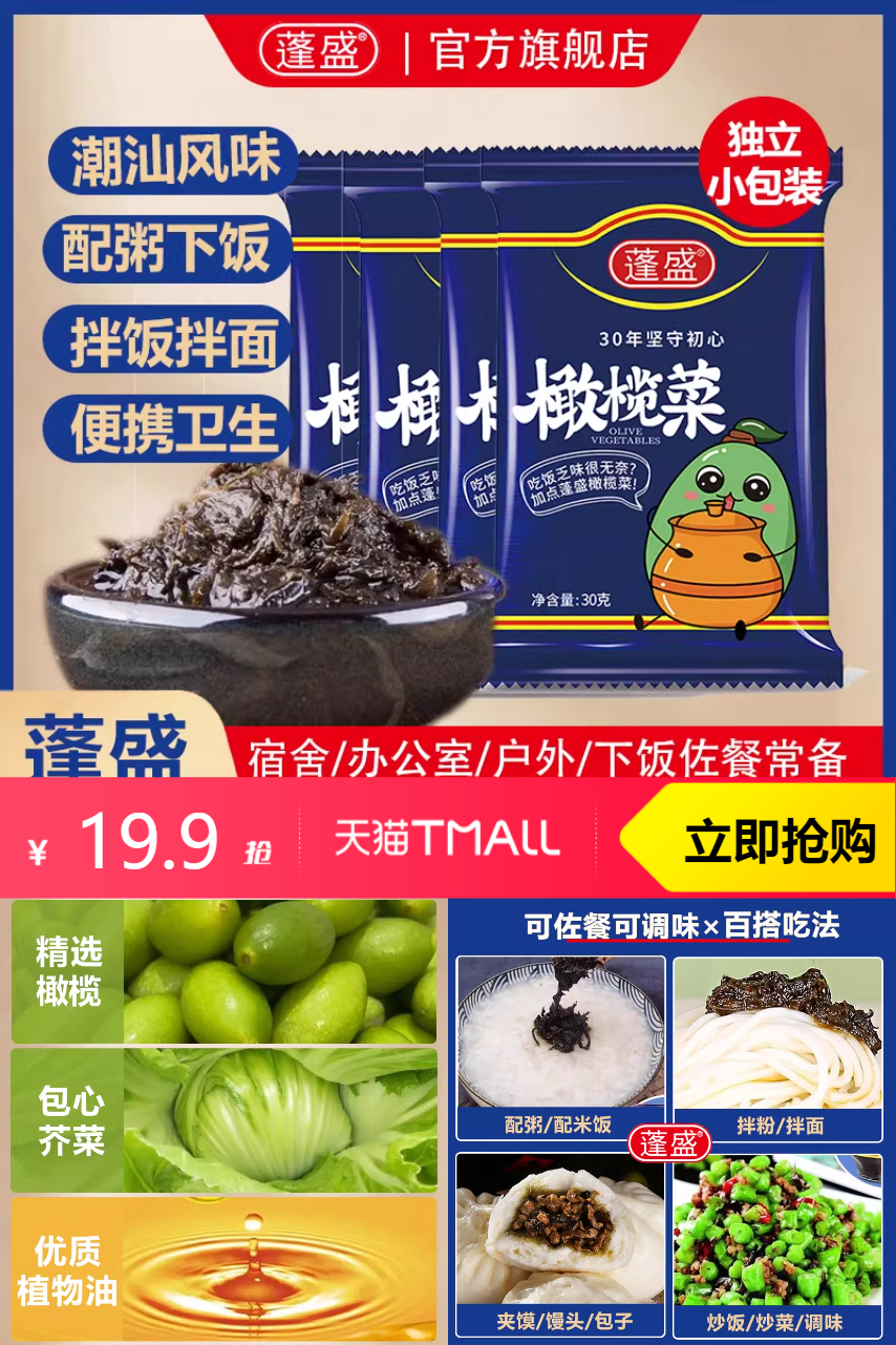【直接拍180g*3罐sku叠加1元首单礼金到手19.9,线下一罐8-9块】蓬盛橄榄菜,潮汕味正浓,咸香四溢,下饭佳品,腌制秘方,回味无穷,开胃佳品,家家必备小菜。