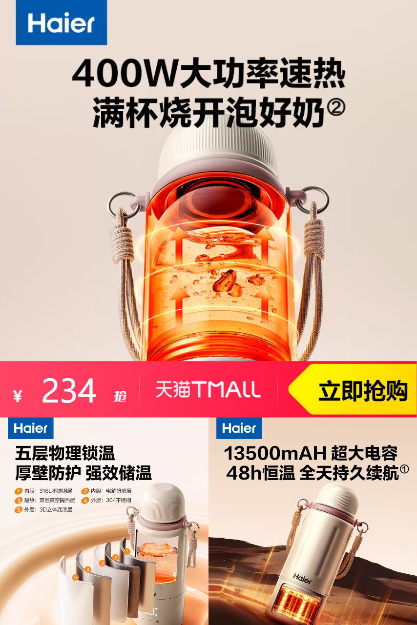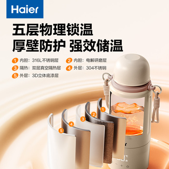 【原价505元-官方立减76-满500减195券商品券-淘金币抵扣15-满200减25消费券-国补29.1元=到手164.9元 (晒图评价加赠价值69元电热水壶)】,海尔恒温水壶婴儿外出专用无线便携式恒温杯冲泡调奶电热烧水壶