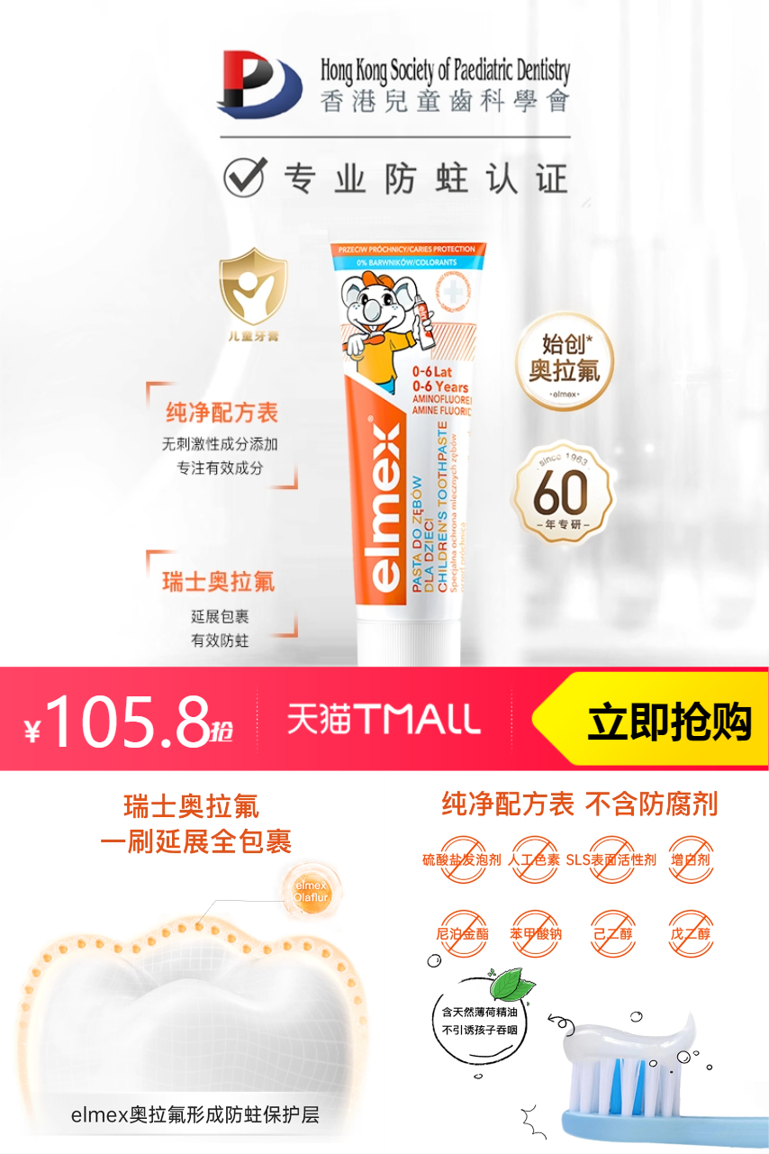 【拍【宝妈挚爱单品】,叠加淘金币13.49元,凑380-45消费券,平均到手1支40元左右,实付满69元即赠成人抗敏牙膏20ml】艾美适防蛀幼儿0-6-12含氟儿童牙膏,分龄分配方,科学防蛙。