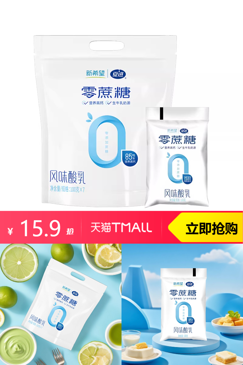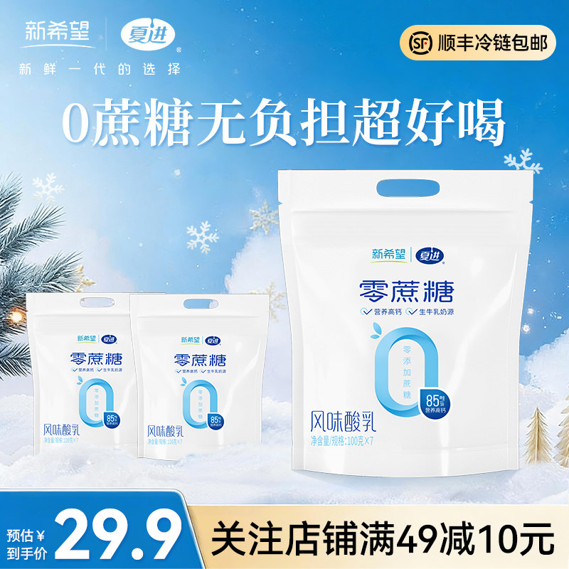 【淘金币抵0.59,到手15.3元,折合1元/包】夏进零蔗糖酸奶100g*14,不添加蔗糖,清爽不甜腻。