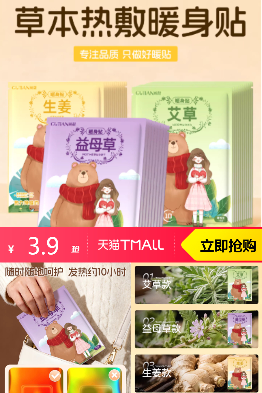 【天降21-23】顾甜草本保暖贴20片,草本萃取,持久发热。