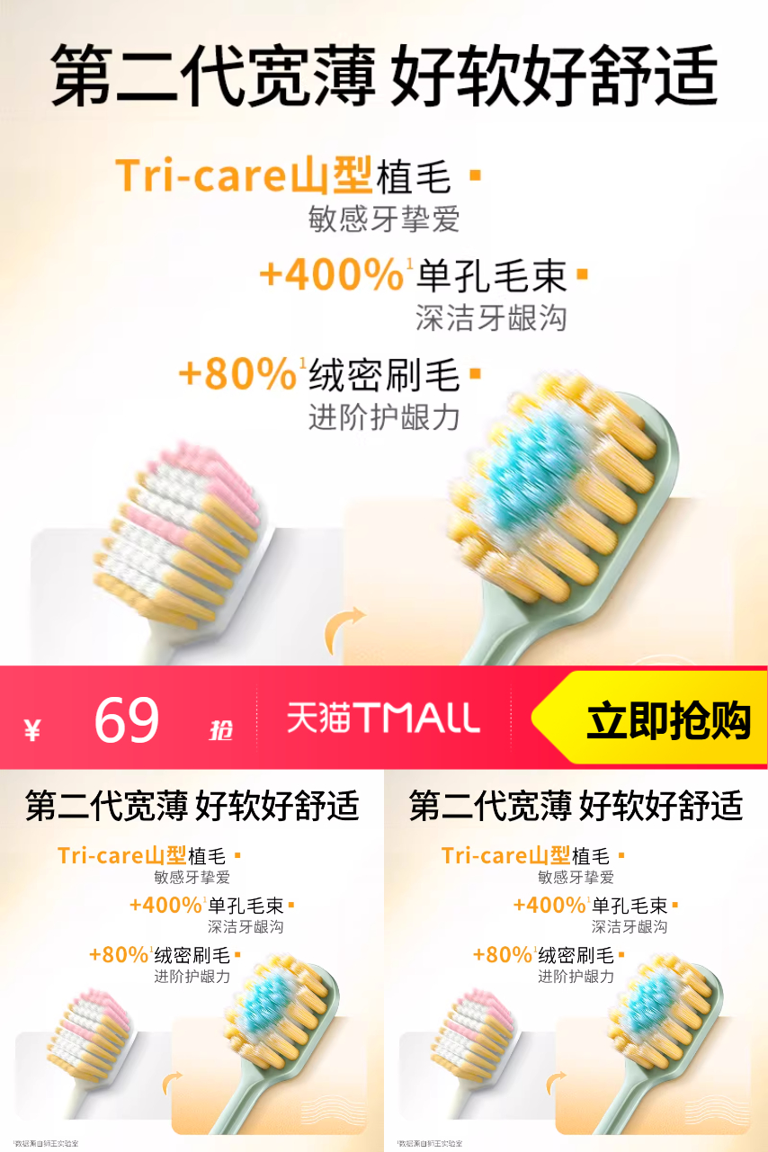 【赠专研美白牙膏120个,留香牙膏40g*2支,淘金币2.68,到手66.32】狮王细齿洁宽薄宽头软毛牙刷成人软毛*9支,品质优选~