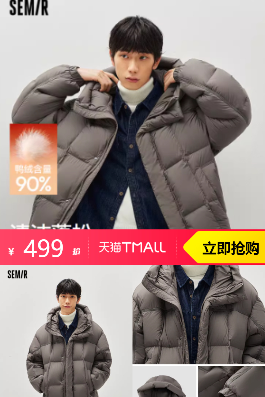 【叠加淘礼金抵扣99.8 ,凑单店铺500-75的店铺大额券抵扣75,金币抵扣10块 消费券折抵扣41.4最终到手303】森马羽绒服男冬装,90绒子保暖升级!2025新款连帽设计,时尚又实用!