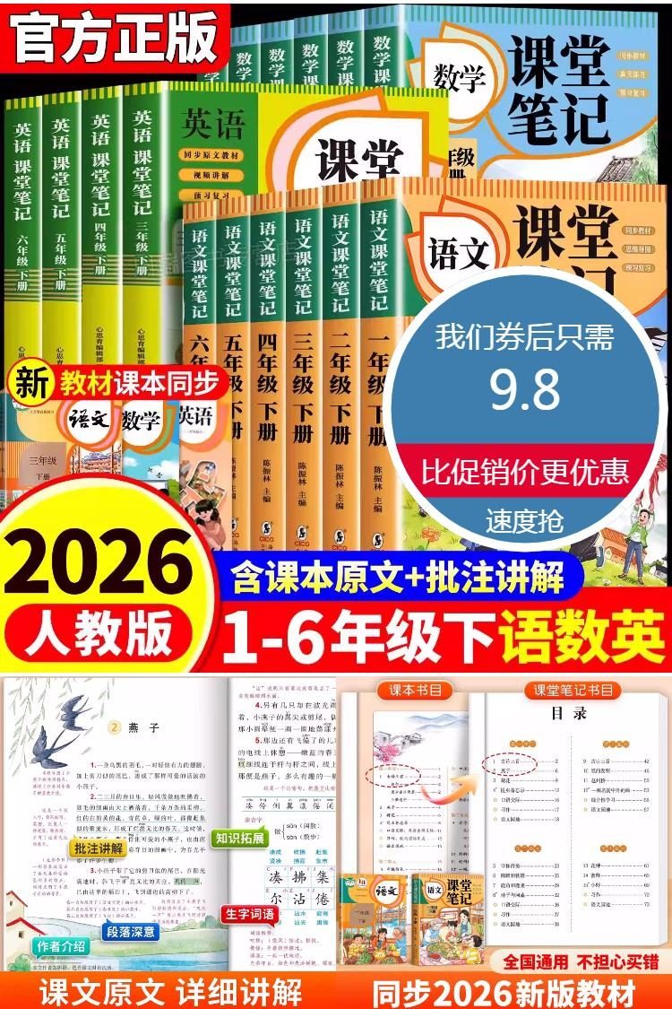 【含教材课本原文+讲解笔记+预习复习】小学课堂笔记,内容同步新版课本,全.国通用,课前预习,思维清晰,批注式讲解,提高效率,课后复习,巩固重点,语文园地,单元总结,小学教材全解教辅!