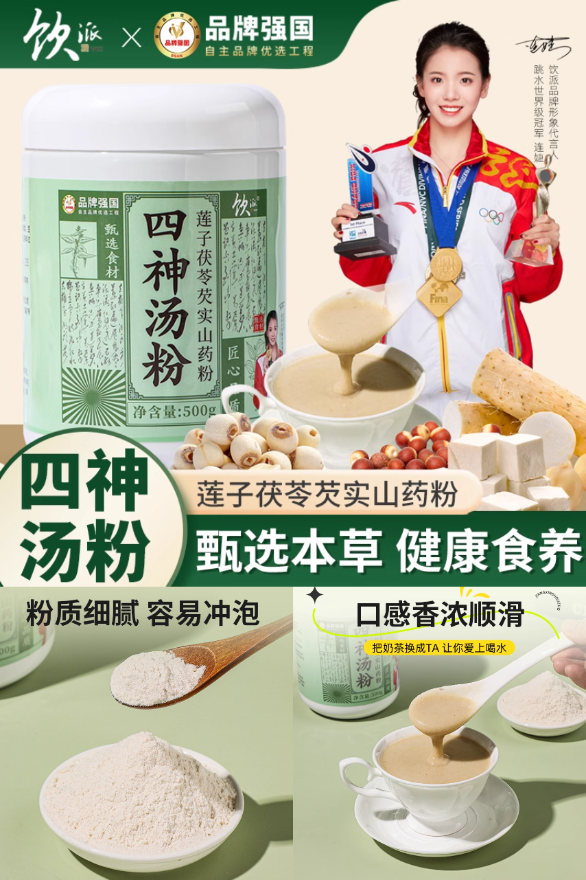 古方四神汤科学配比!芡实+茯苓+山药+莲子,0添加防腐剂,温和健脾养胃,全家都适合的营养早餐粉~享300g大容量!免煮即冲,5秒搞定暖胃代餐,学生党、上班族、儿童成人一罐全满足!