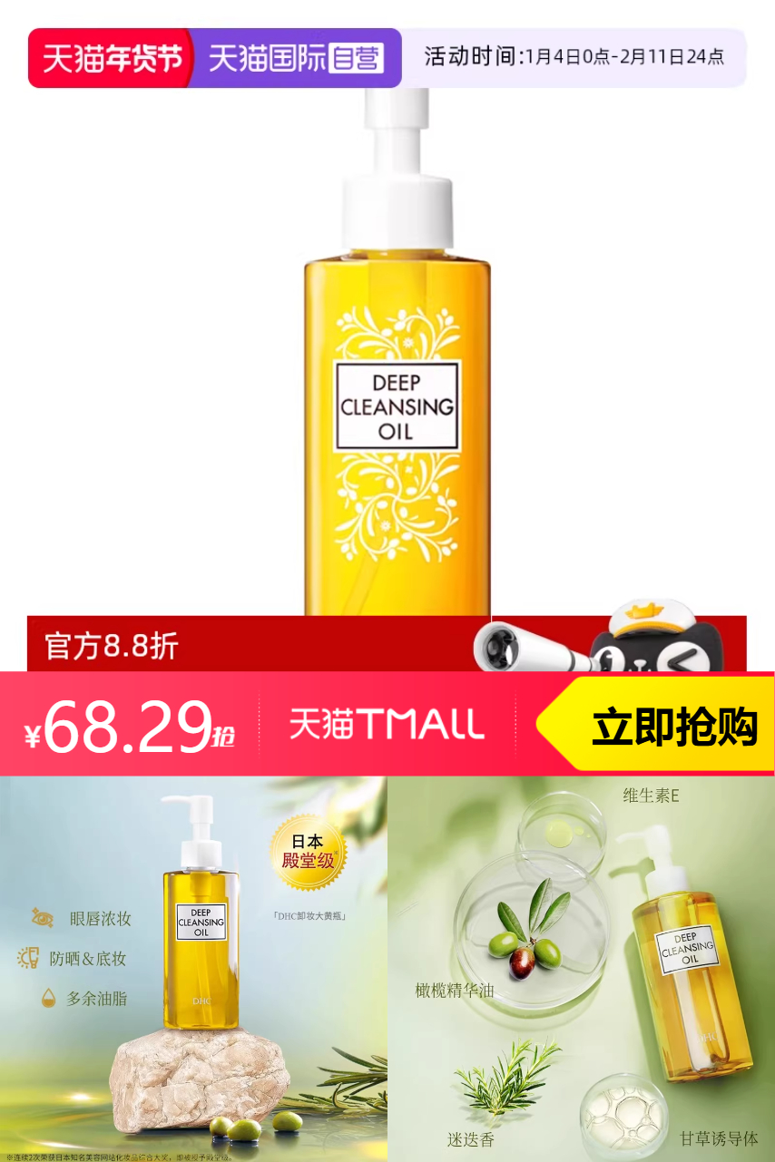 【原价99元,官方立减11.9,单品直降7.1元,5元店铺券,88vip抵扣3.75元,淘金币2.97元,叠加200-25消费券到手59元起】DHC橄榄卸妆油120ml,品质优选~