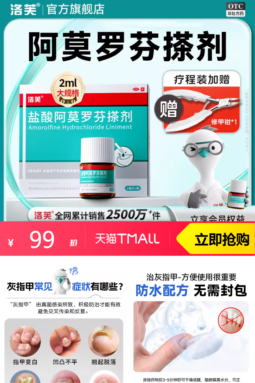 【原价137-官方立减28-商品券10-淘金币5.48-限时立减0.11-首单礼金10=到手价83.41,叠加消费券到手71左右】洛芙盐酸阿莫罗芬搽剂一盒正品旗舰店,品质优选!