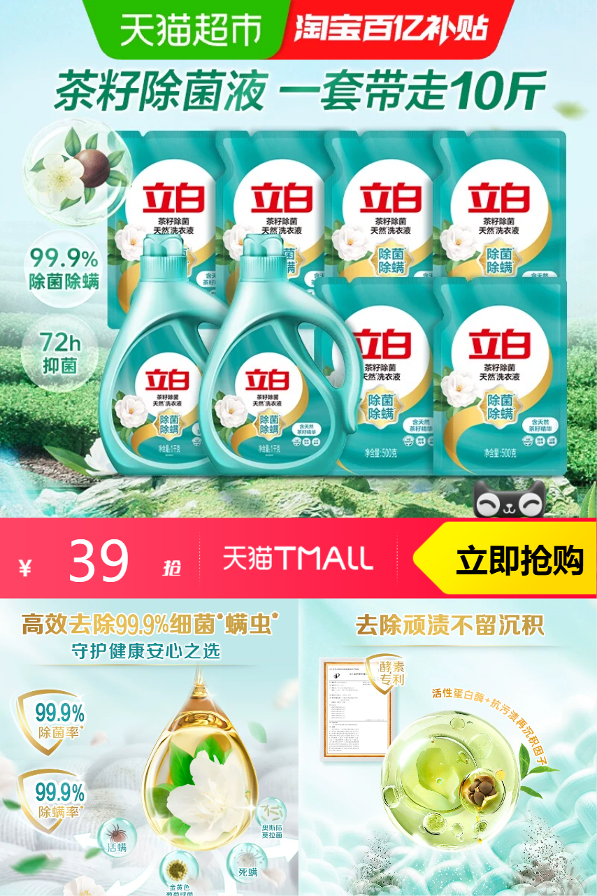 【1、页面到手价44+下单立减5元红包+5元的品牌金+2.2淘金币+2.83淘礼金=到手28.97/5kg 2.9/斤 2、88vip,百补加补到手28.97-直降补贴3.52=25.45 3、闪购红包3-4块,到手最 低21.45】家庭洗衣好帮手,清洁又健康,选立白洗衣液,茶籽配方,深层除菌。