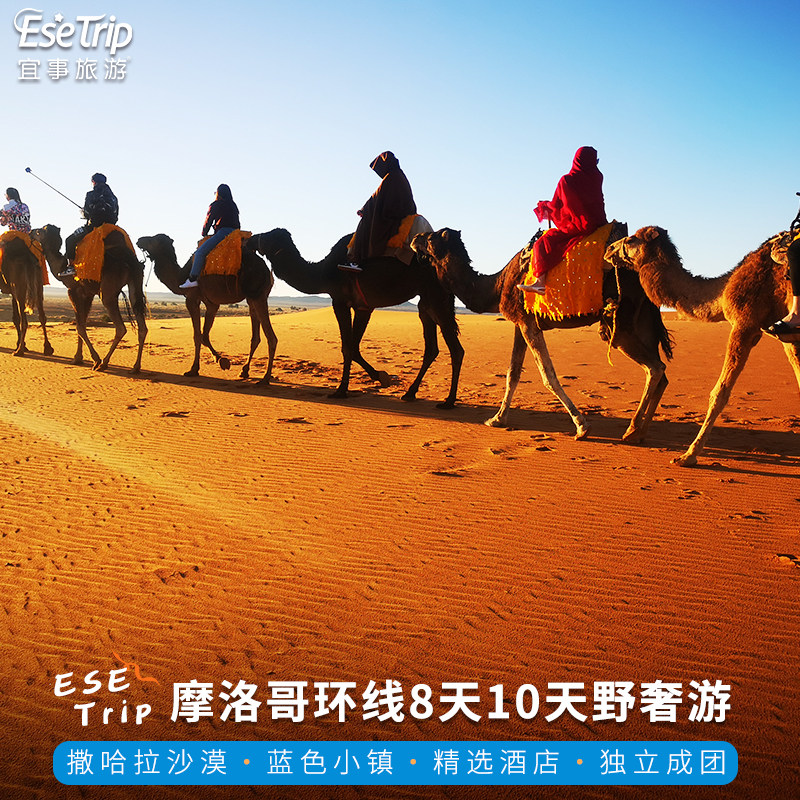 【精选酒店】星级酒店,特色帐篷,摩洛哥Riad,一次行程全部体验 【品牌好车】豪华越野车,奔驰商务车等高端车型,舒适体验; 【绝妙体验】骆驼骑行+沙漠露营+大漠日落+浩瀚星空+篝火晚会; 【独立成团】独立用车,优选司机带给您温馨舒适的旅途体验;