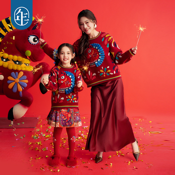【董璇同款】年衣童装儿童毛衣亲子装,冬款拜年服,男女童均可穿,保暖又喜庆,拍2件仅需49.9元!新年穿它,全家福感满满!