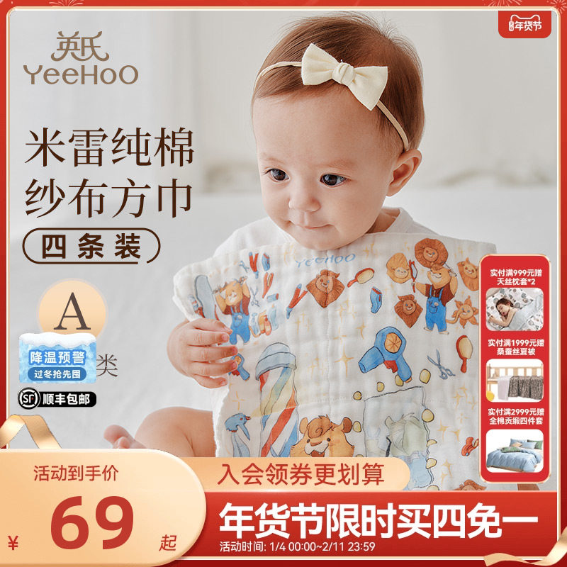 【英氏】A类米雷联名款口水巾,采用6层纱布材质,柔软亲肤,专为宝宝设计,吸水性强,有效防止口水溢出,给宝宝一个干净整洁的生活环境。4条装,方便携带,满足宝宝日常需求。