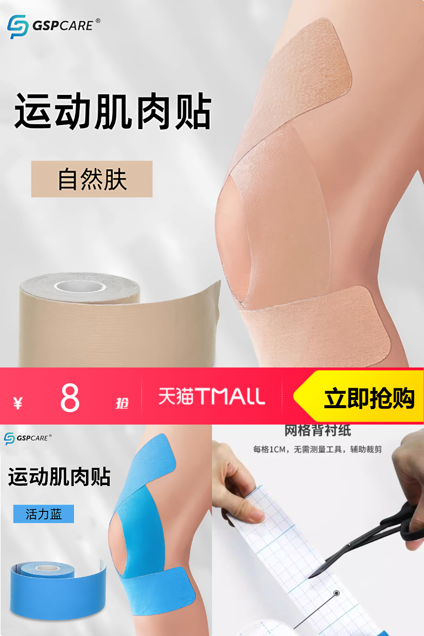 【叠加淘金币1.19元到手6.81元】GSPCARE专业运动肌肉贴,无论你是跑步、健身还是打球,它都能助你避免肌肉拉伤,提升运动表现。