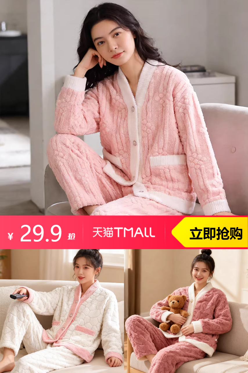 【券后到手29.9】秋冬长袖双面舒棉绒睡衣,一眼就爱上的睡衣,真的迫不及待穿上啦!超多款式!还是开衫款!这价格简直屌爆啦!快冲啊!