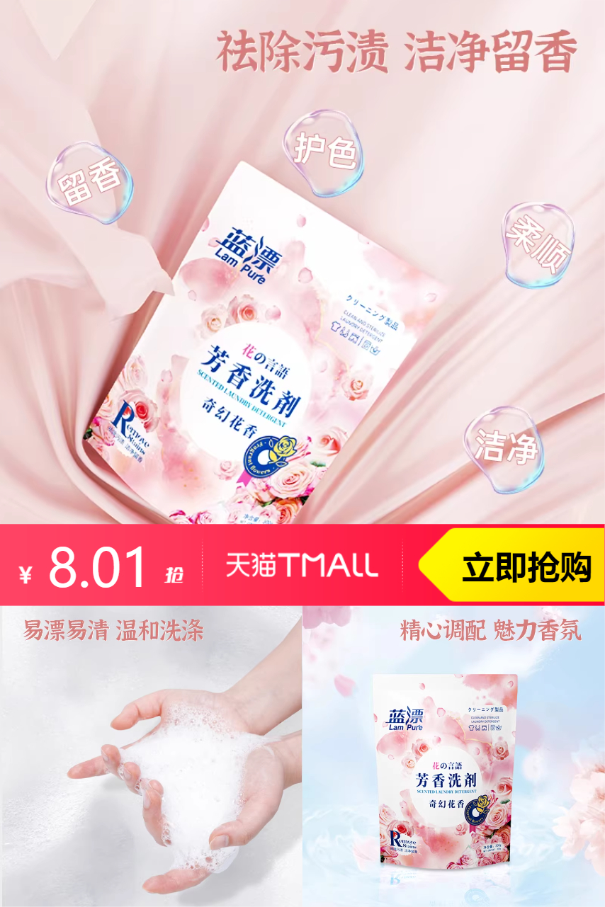 【26-27号天降补贴到手价2.5元/300g*3】香水洗衣液袋装持久温和去渍300g*3,祛除污渍,洁净留香。