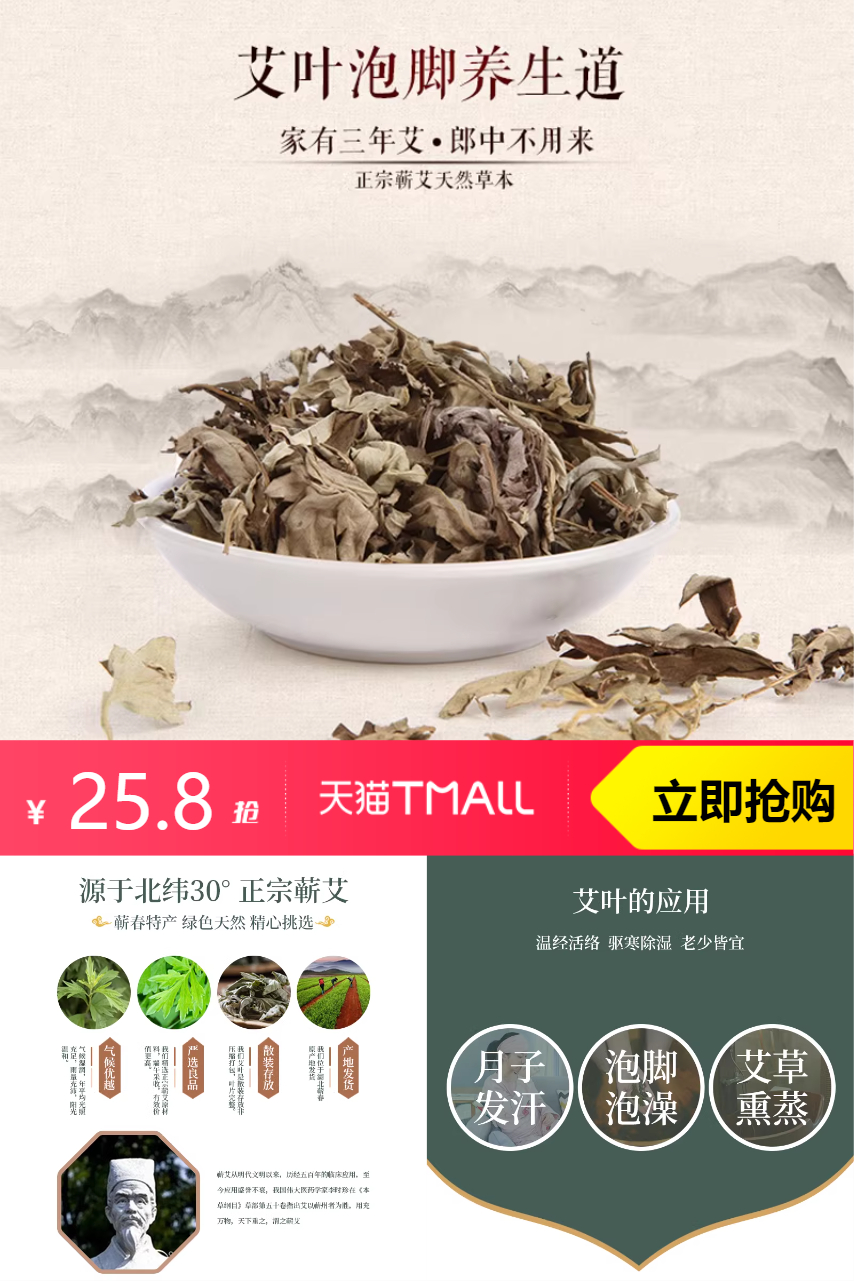 【首单礼金减2,淘金币抵5.17,到手18.63】蕲春艾叶纯干艾草散装足浴包500g,泡澡泡脚,四季皆宜。