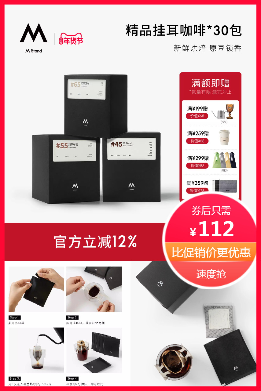 【官方立减31元,凑88消费券+淘金币,到手约93.88元,10g*30袋】精品咖啡 + 手冲便捷 + 阿拉比卡豆!高品质口感!多种口味选择!每包10g完美分量!2分钟快速冲煮,随时随地享受美味!!