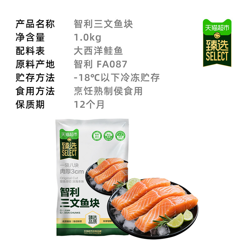 推荐:臻选智利进口冷冻三文鱼块1kg