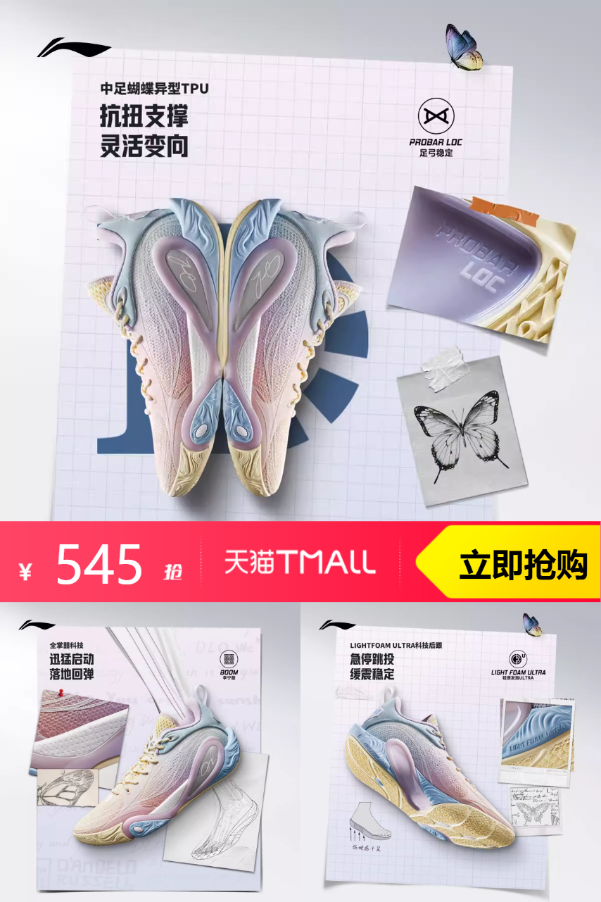 【鸳鸯配色全尺码,淘金币抵扣52.25,凑消费券+ 购物金后到手仅需320左右;得物430起】李宁DLO 1 拉塞尔一代丨篮球鞋男,穿上后,脚底仿佛踩在棉花上,超级舒适。而它优秀的透气性更是让我的双脚不再感到闷热。