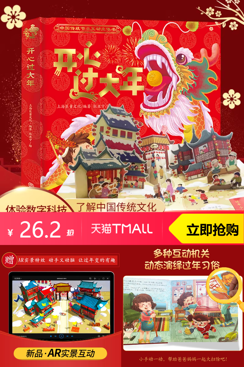 【可叠加年货节超级红包到手更低仅需25.16元】巨童好书开心过大年立体书儿童3D立体,书中生动的立体形象和互动游戏设计,能激发孩子的好奇心和探索欲望。