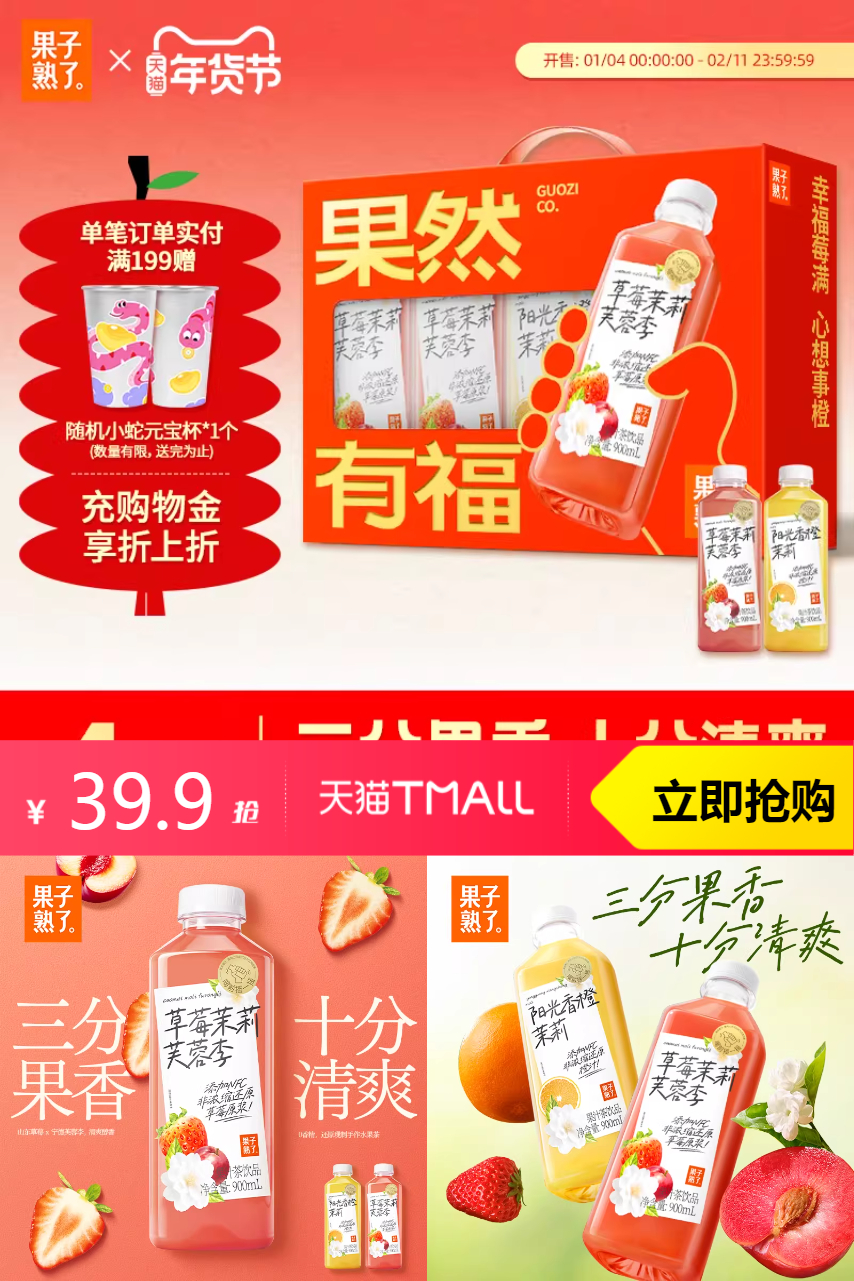 【88vip叠平台满200减25消费券,减淘金币1.5元,减限时红包4元,减年货节超级红包0.71元,到手价27.19元。】果香扑鼻,甘甜畅快!一盒四味,品质有保障。口感丰富,味道更佳!