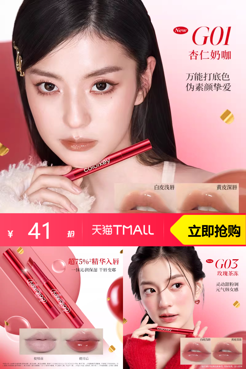【淘金币抵扣3.52,到手价37.48。随机领店铺限时红包6元,到手15.74/支】【任选2】珂拉琪红管固体唇蜜口红水光,秋冬干唇挚爱,一支多用!!一抹高亮,水光嘟嘟唇!