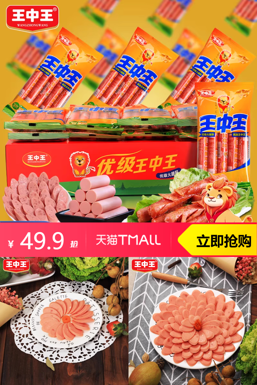 【叠加淘金币1.79元到手48.1元】王中王火腿肠礼盒5支*9,爆款链接好香肠王中王送礼就选王中王,香/润/淳/弹/鲜/,传承美味|匠心制作。