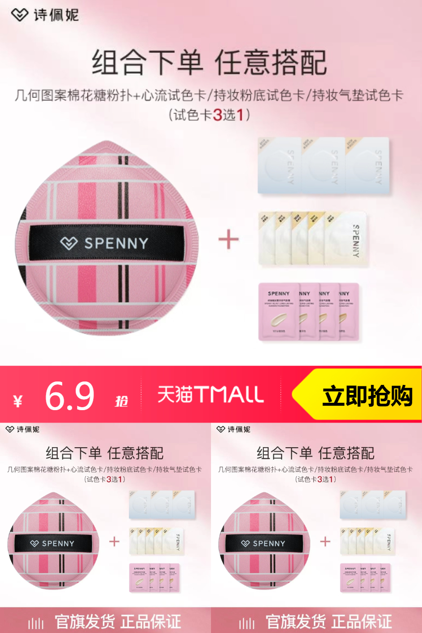 【原价12.9-官方立减2-商品券4-淘金币0.38=6.52元,三选一试色卡+粉扑一个】【试用】诗佩妮持妆粉底液气垫霜试色卡任选,品质优选~
