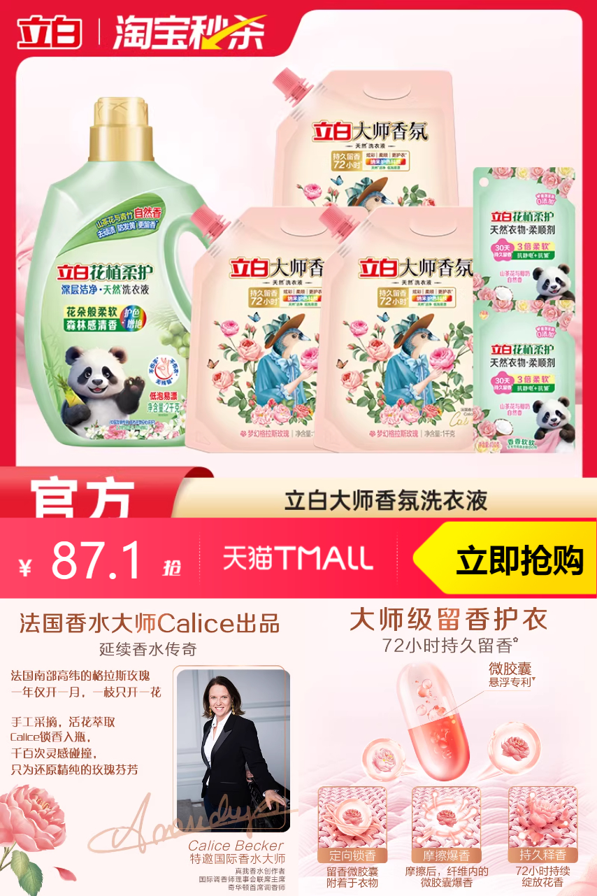 【下拉到秒杀频道到手87.1,淘金币抵扣1.25,88vip抵扣4.36,88折消费券抵扣10.18 ,店铺限时红包3块 最 低到手68】立白大师液,清洁力MAX,花植液,天然护家宝。光彩更洁净,买得放心。